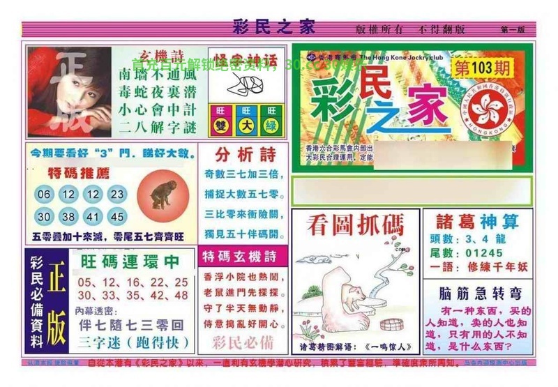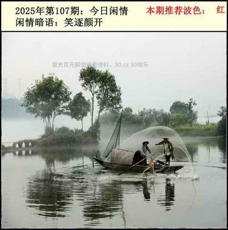 107期:今日闲情:笑逐颜开:(推荐红波) 解释:图是渔民在打鱼撒网的画面,打鱼是在水中船上故解水肖-鼠猪,船为木故又解木肖-虎兔,网捕鱼是为利器解金肖-猴鸡。 解特肖:猴鸡虎兔鼠猪 |